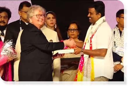 by Dr. Tejaswini Ananthkumar (Founder Adamya Chetana) to Mrs Mamatha B for the social impact made by Sparsha Trust.